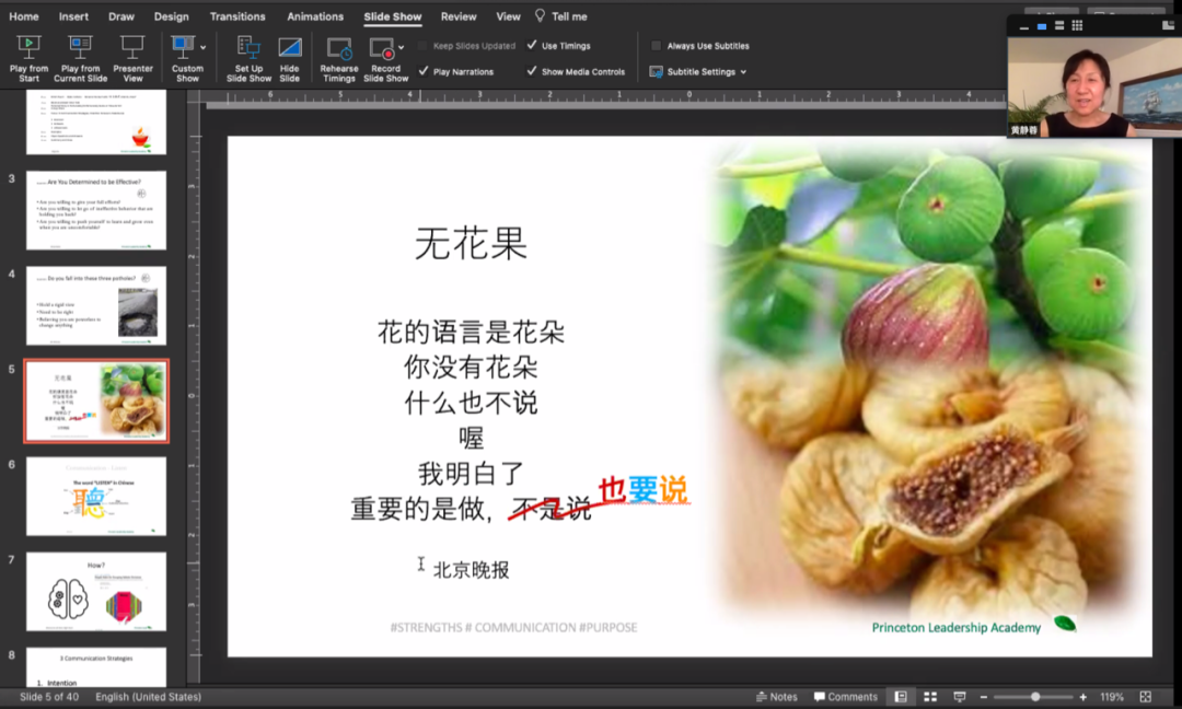 疫情之下我们的交流大多都转为线上,在前几次酒会上,大家针对疫情期间如何进行高效的线上交流沟通提出了很多问题。应杜云松校友(8307)邀请,作为一名经验丰富communication coach的黄静蓉校友(8402)于上周六(9月28日)美东时间晚上以线上讲座形式为我们带来了一次特别的communication training,也暨我们校友会举办的第四次线上酒会。