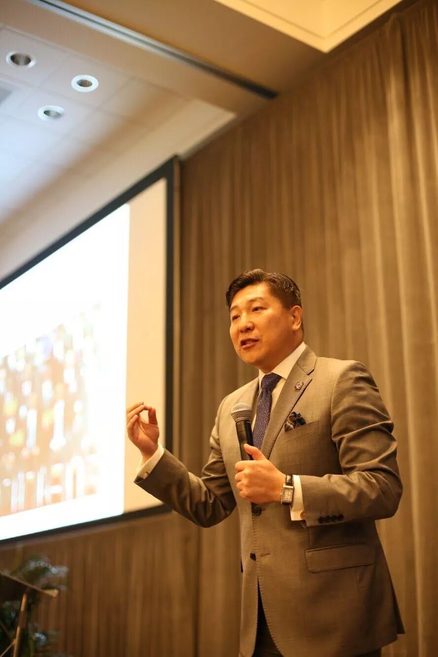 接着峰会共同主席,校友会顾问马俊(809)代表上台致辞。他首先代表峰会欢迎参会者的到来,并提出将窦剑文(854)校友在前一晚峰会欢迎晚宴上的名句“科大人帮助科大人,已经成功的科大人帮助在路上的科大人”作为本届峰会的口号。