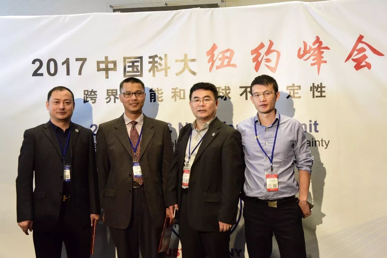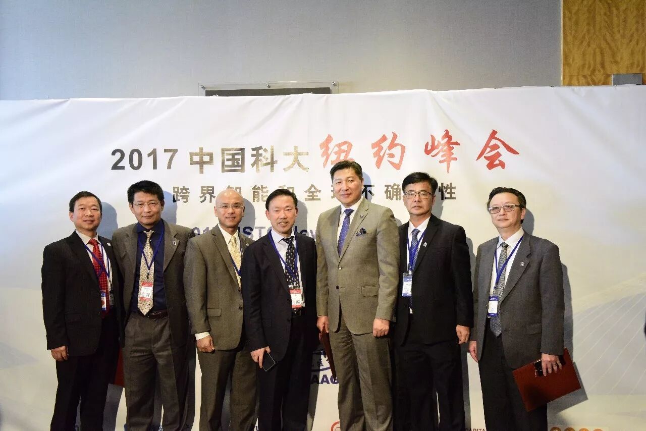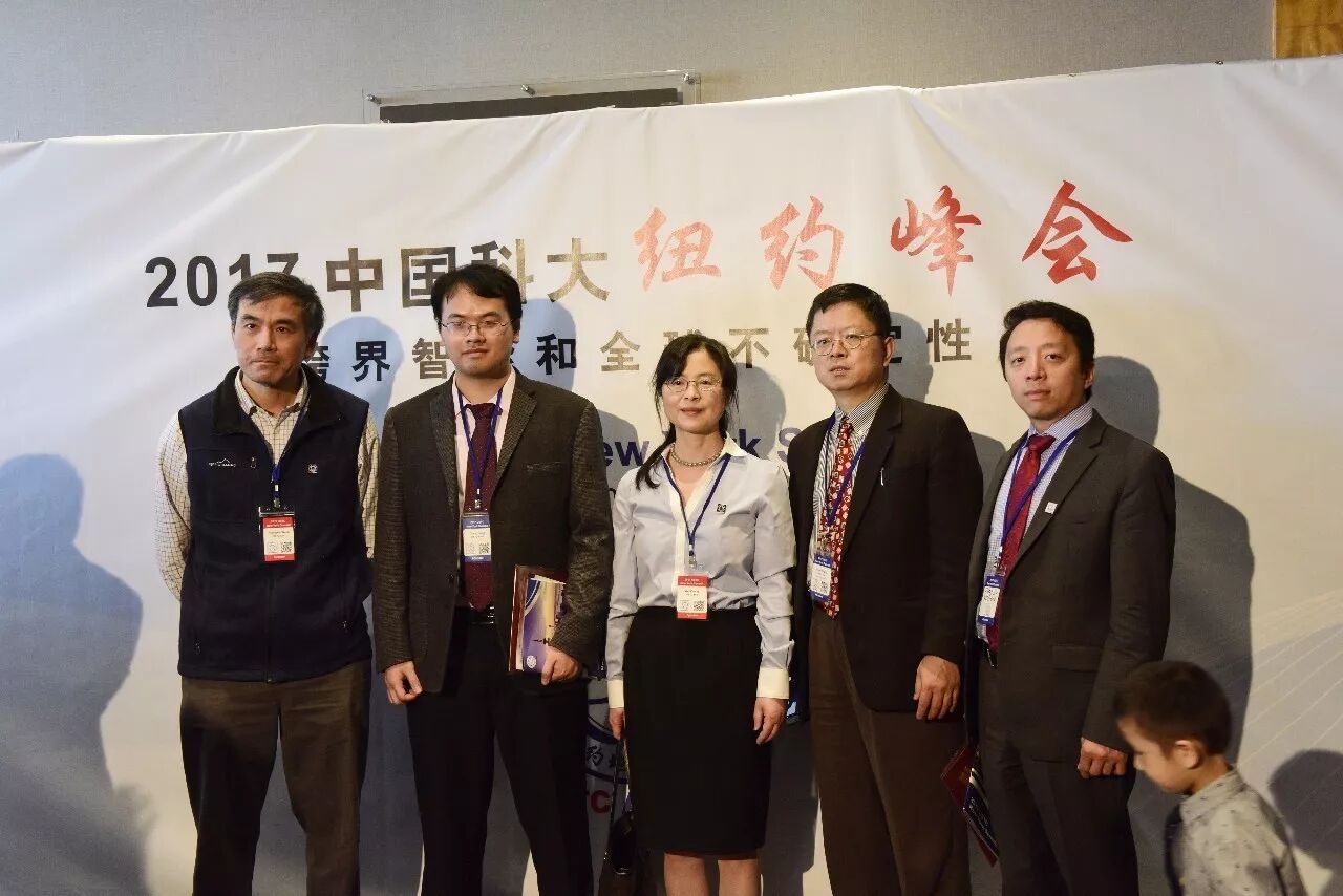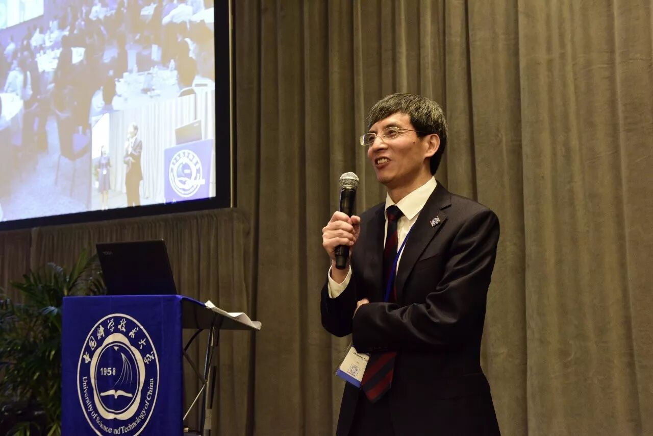 接着峰会共同主席,校友会董事杨竞霜(86少)校友主持了2017年度中国科大海外杰出校友奖的颁奖仪式。陈初升副校长和校友会董事会主席郝艺(835)共同给获得杰出校友奖的陈向力(802)校友颁发奖杯。