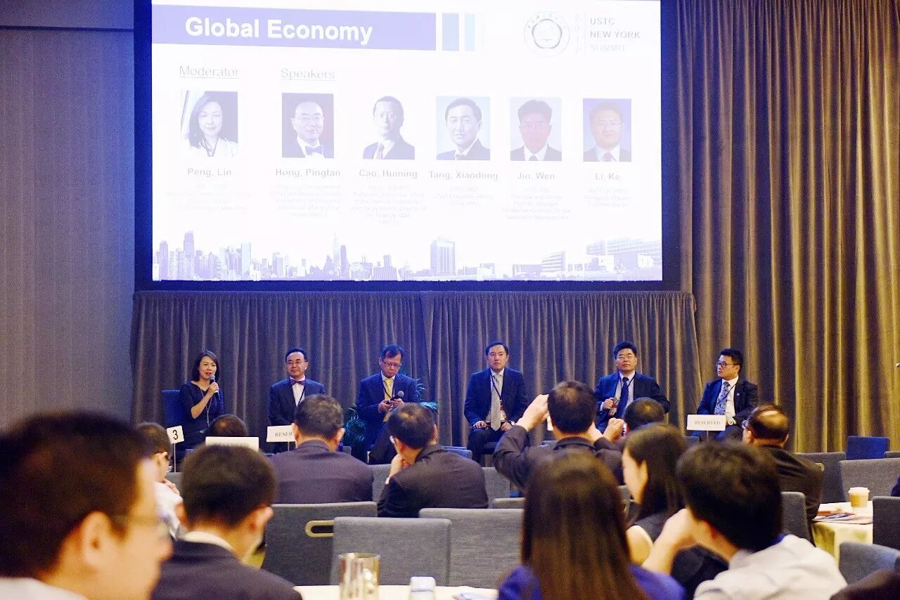2017中国科大纽约峰会全球经济分论坛有幸得到重磅嘉宾们的助阵:来自联合国发展政策研究司(前联合国全球经济监测中心主任)的洪平凡司长,华夏基金总经理(前证监会国际部主任)汤晓东(862)校友,华尔街精英舵手们: Prudential的董事总经理金文(867)校友和高盛集团董事总经理李可(92少)校友,和著名教授们:长江商学院的曹辉宁(79少)校友和纽约市立大学的彭琳(9108)校友。来自各个领域的精英们对宏观经济、金融市场、金融监管和金融创新展开了交流并表达了深刻而独到的见解,为与会者们奉上了一场智慧的盛宴。