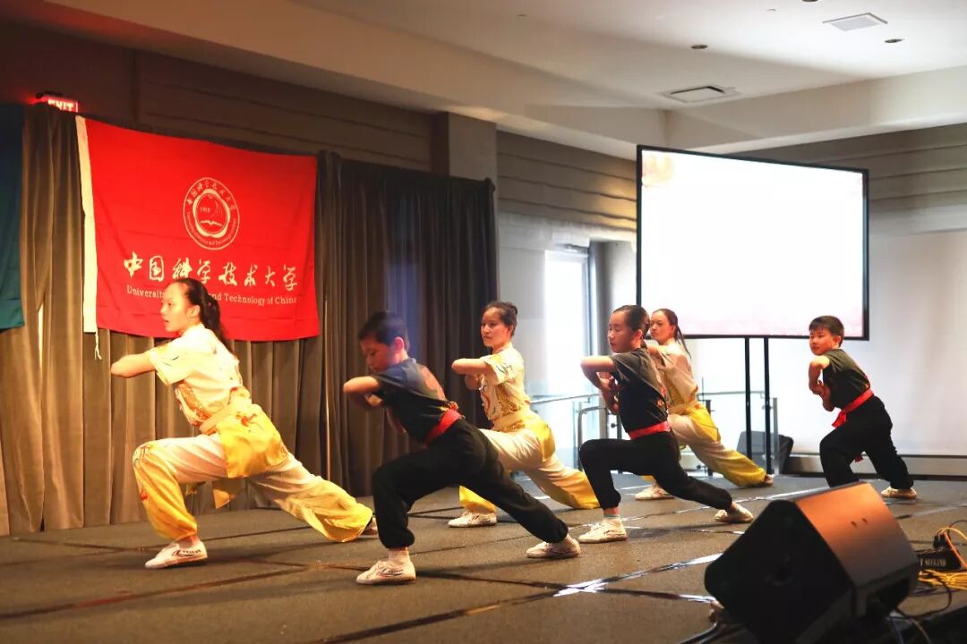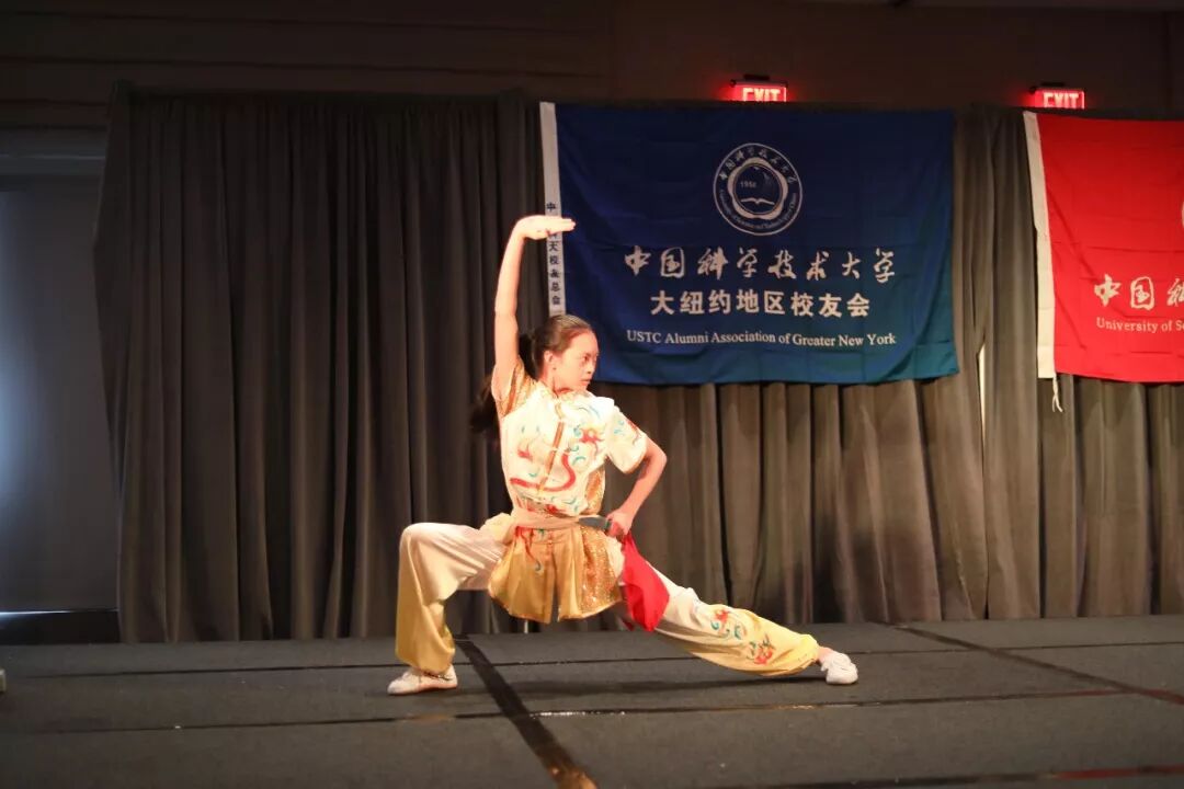 接着上来的节目是赵长军武术学院的学员,马江,徐浔(785)校友,王峥嵘,校友会董事彭琳(918)校友,Fiona Wang,Ruby Min,Amber Min,熊梅雅,熊翼天,陈玉琨带来的武术表演,虎虎生威,英姿飒爽!其中熊梅雅和熊翼天是彭琳校友的孩子,他们和陈玉琨都是咱们的科二代。