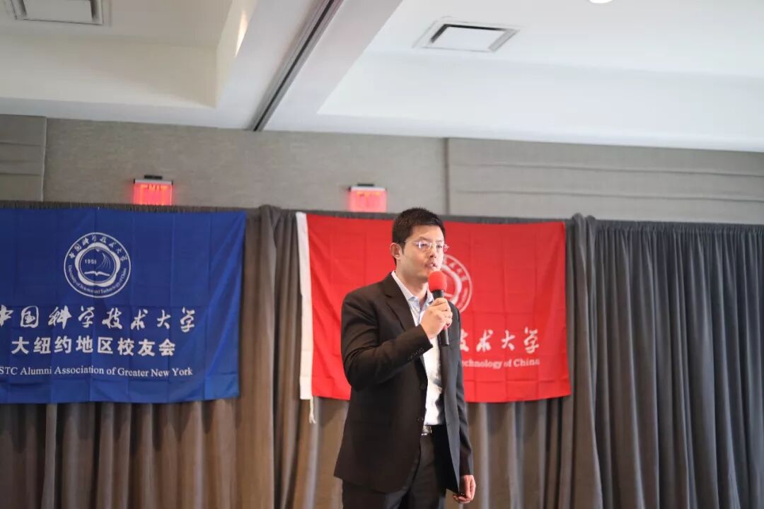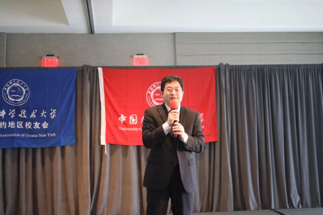 接着杨中波领事也受邀上台讲话,他首先代表纽约总领馆向大家致以亲切的节日问候,祝大家新年快乐,万事如意!杨领事还回顾了自己在中科院工作经历,使得自己与校友们有着天然的亲切感,并希望校友们为祖国的科技发展做出更大的贡献。杨领事还强调说科大海外学子多,凝聚力强,希望领馆和校友会能够继续合作,为校友们提供更优质的服务!